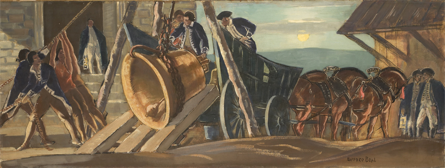 Shown: Gifford Reynolds Beal (American, 1879-1956), Hiding the Liberty Bell in Allentown, Pennsylvania, 1938, oil on Masonite. Allentown Art Museum: Gift of the family of Gifford Beal, 2006.