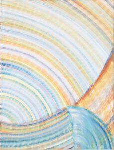 Riede lends her experience as a lifelong dancer to her painting, translating movement into gesture on her abstract canvases. Beginning with an intuitive movement off the canvas, such as the arc of an arm, she then records that same movement in paint. She is also inspired by nature’s motion: lava flowing, ocean waves rippling, rays of sunlight streaming.